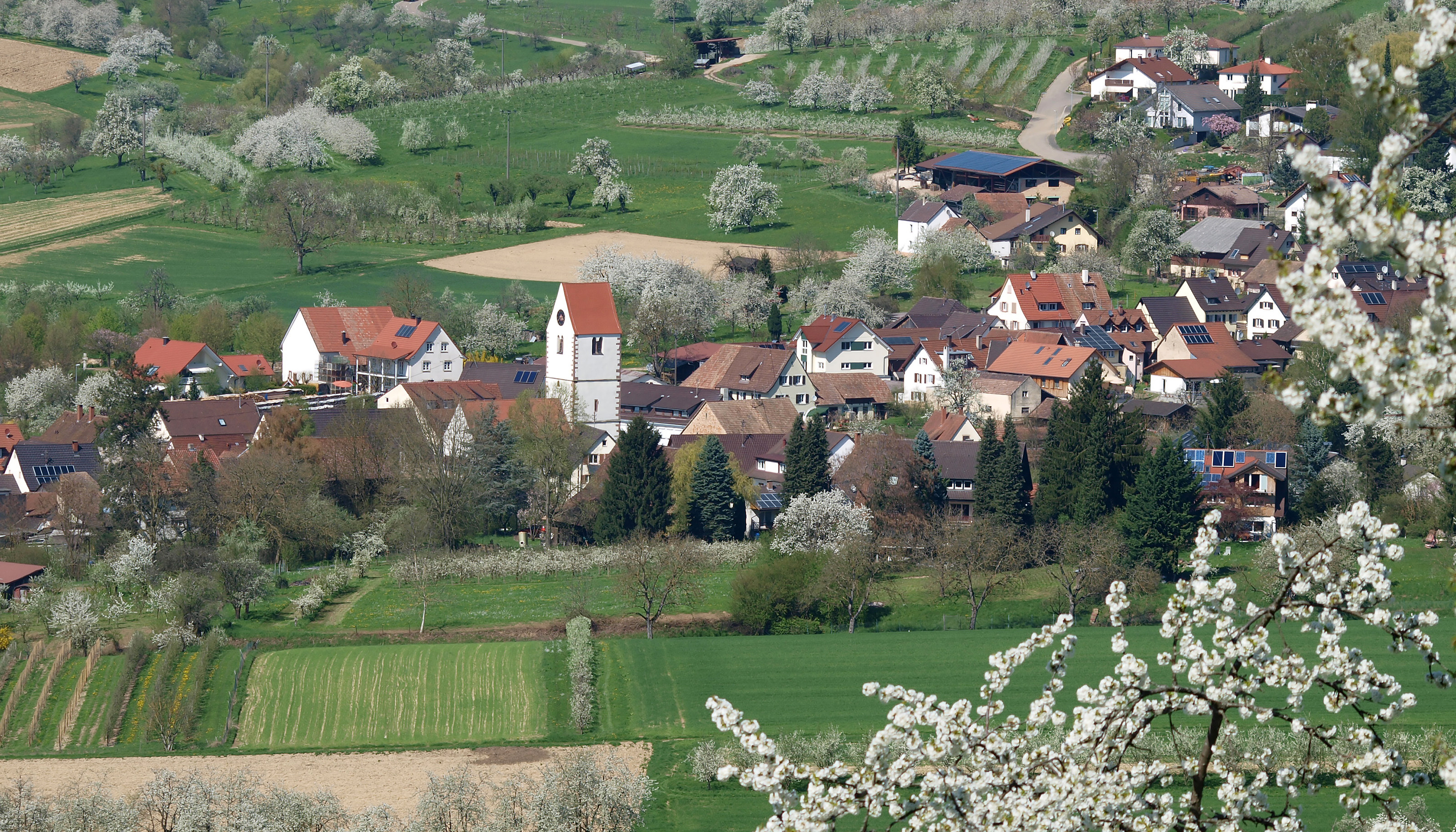 Ein ganzes Tal voller Kirschblüten durchfahren Sie heute im Eggenertal im Markgräflerland. Hier blühen im April hunderte Obstbäume unterhalb des Hochblauen, der 1165 m hohe Hausberg von Badenweiler, am Fusse des Südschwarzwaldes.